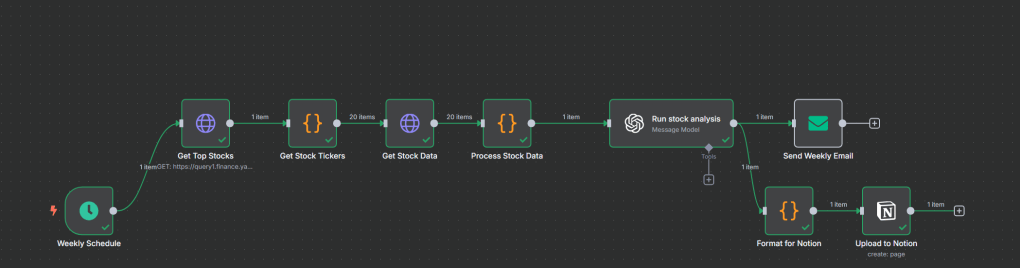 Over the past few weeks, I built a personal project that has become one of my most useful tools: an AI-powered stock analysis assistant. It helps me analyse companies like a value investor, automatically tracks the top stocks weekly, and stores everything in Notion for future reference—all without me lifting a finger.